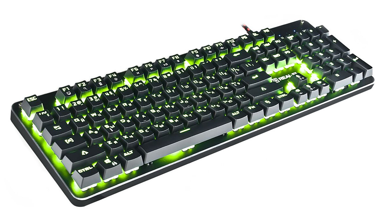 Klaviatuuri REAL-EL M47 RGB eripäraks metallist alus, RGB reguleeritav tagantvalgustus, full taustavalgustusega ekstra valguse mõju, NKRO seaded, 12 Fn funktsiooniklahvi kiireks juurdepääsuks Windowsi, Internetti, Multimeedia jne.