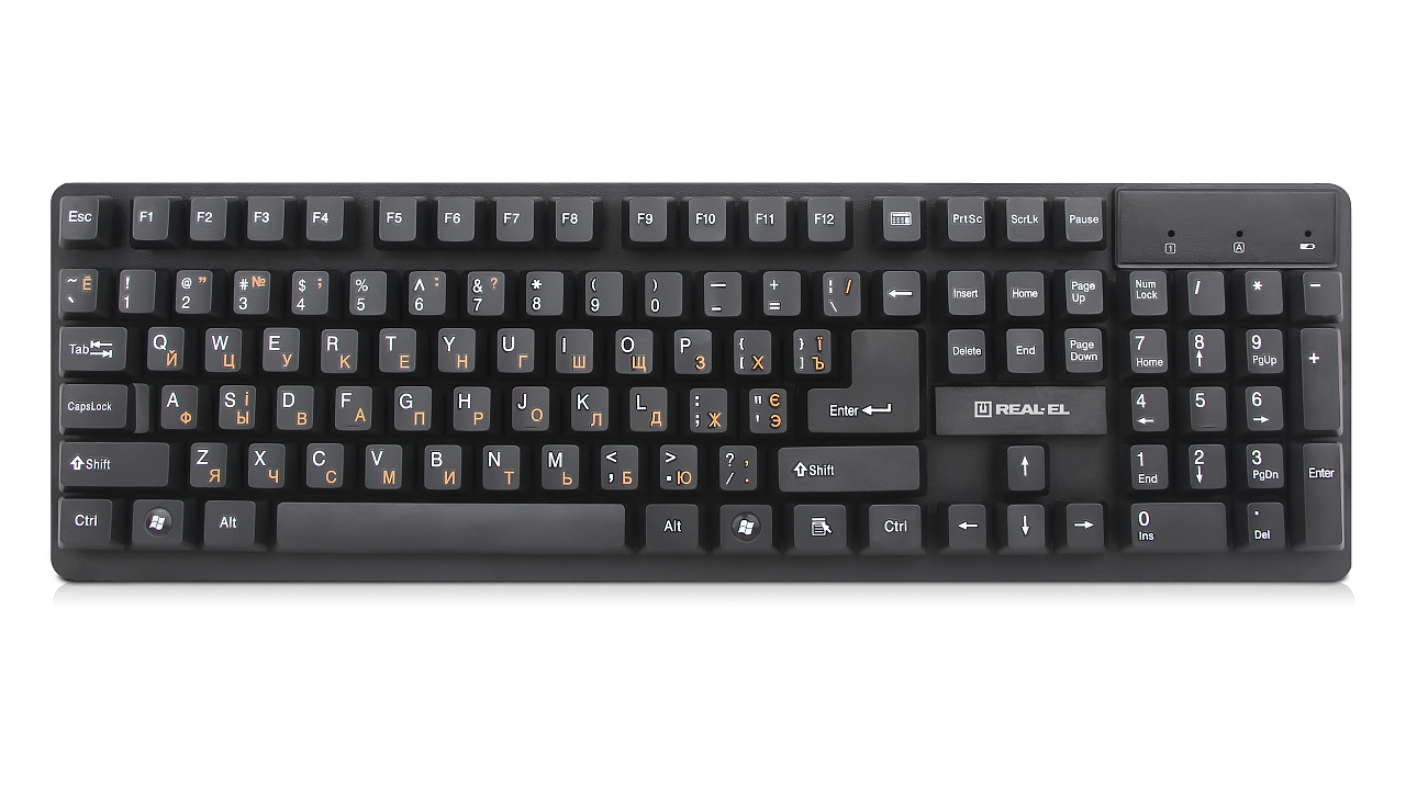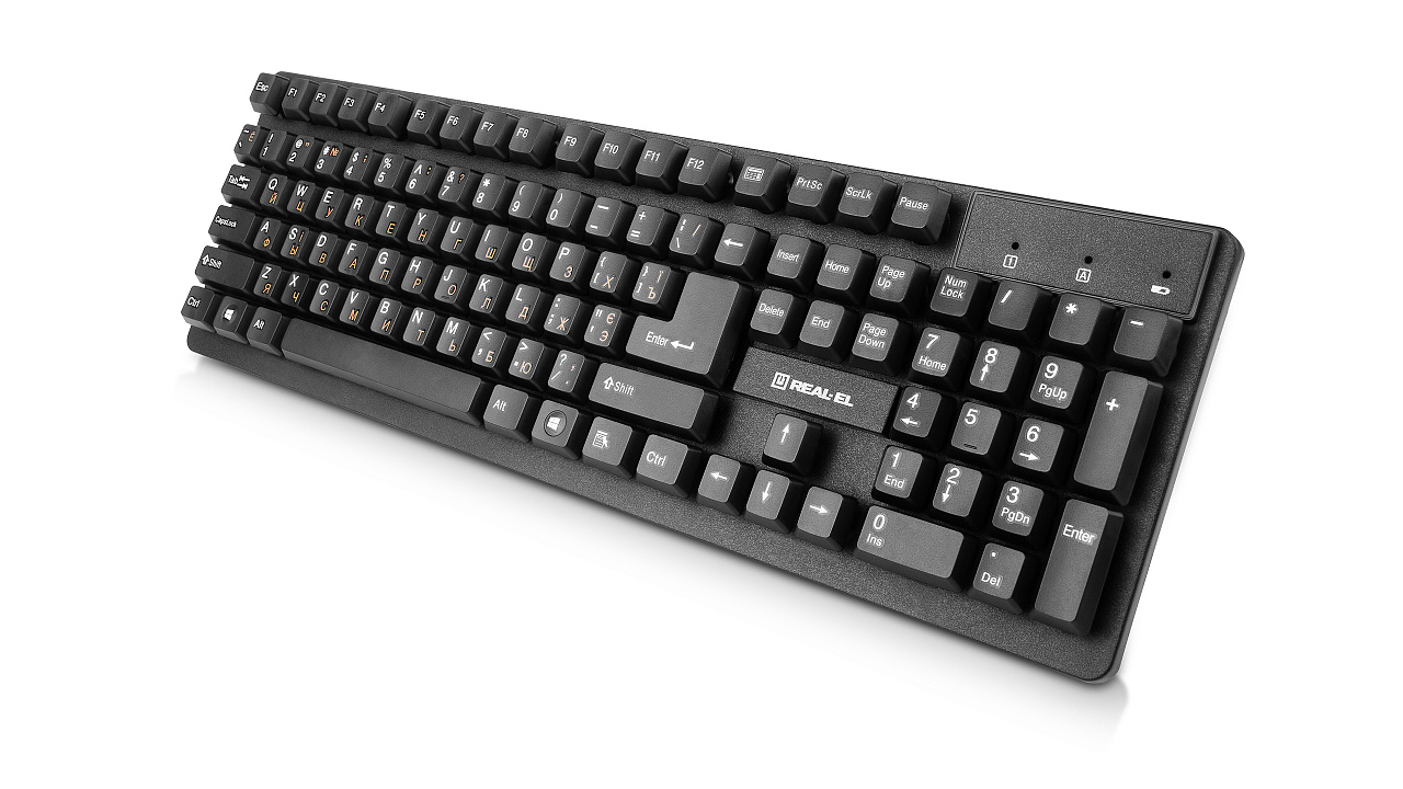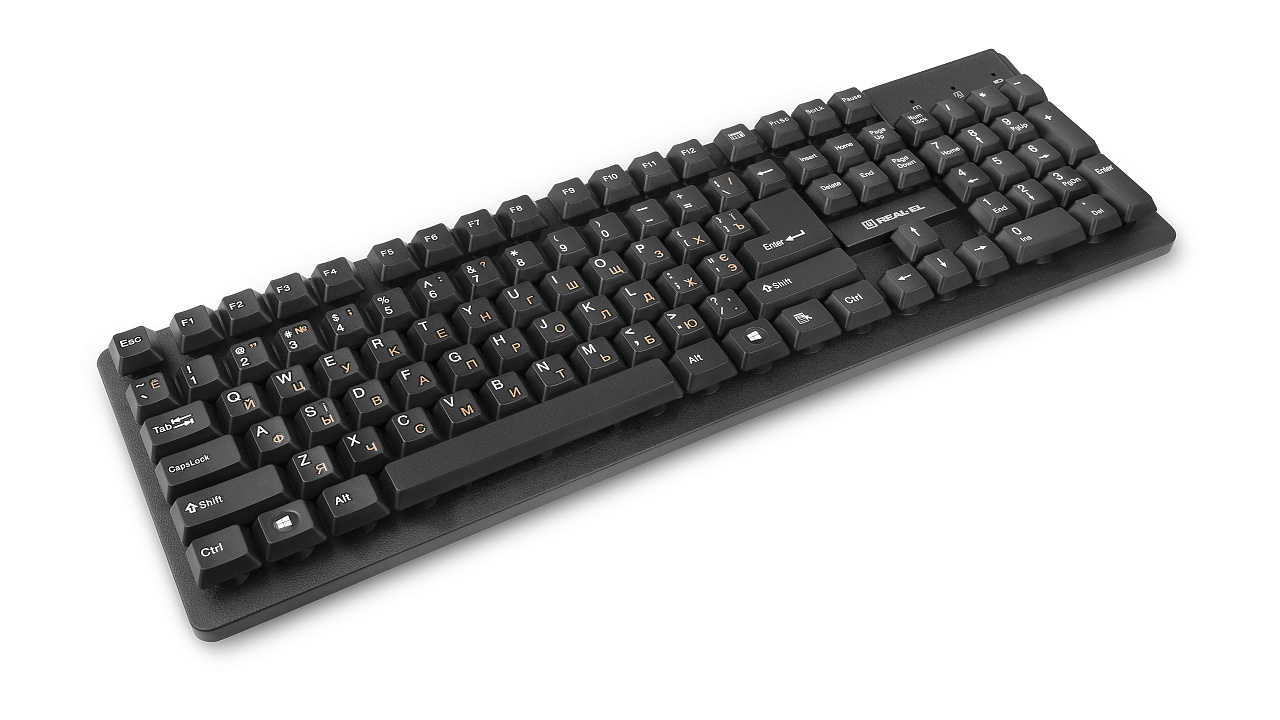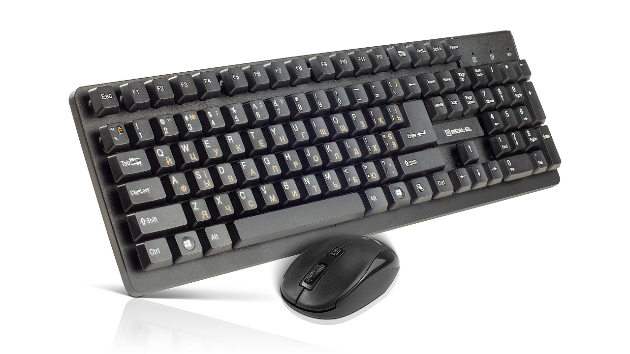Klaviatuuri ja hiire ergonoomiline disain, standardne klahvipaigutus, USB, automaatne ühendus, mis ei nõua vastuvõtja ühendamist manipulaatoriga, kuni 10 m kaugusel, vähendatud müra töötamisel, pikaajaline töö ühe komplekti patareidega - traadita komplekti omadused standardne klaviatuur + hiir REAL-EL Standard 550 Kit Wireless.
