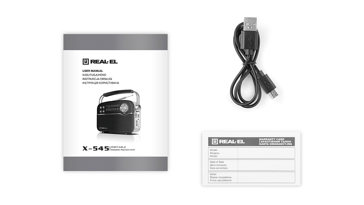 Kaasaskantav raadiosaatja REAL-EL X-545 on suurepärane kaaslane reisidele, seiklustele ja jalutuskäikudele, samuti suurepärane kaaslane kodus ja tööl. Lisaks sellele, et saate kaasa võtta oma lemmik FM-raadiojaamad kuhu iganes soovite, on vastuvõtja mudelile lisatud kaasaegsed võimalused: juhtmevaba signaali edastamine Bluetoothi kaudu, esitamine USB-flashilt ja microSD-kaardilt. Sisseehitatud liitiumioonaku tagab raadiosaatja väga pika tööaja.