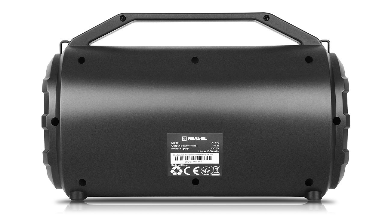 Multimeedia kaasaskantav akustiline süsteem REAL-EL X-710 omab kaasaegset disaini valgustusega ja kvaliteetse heliga. "Boomboxi" lai funktsionaalsus võimaldab kuulata muusikat ühendades mobiilseadme, arvuti, TV, sülearvutid jne, nii AUX väljundi kui ka Bluetoothi kaudu. USB ja Micro SD kaardi pesad võimaldavad kuulata audiofaile flash-mäluseadmetelt. X-710 on suurepärane kaaslane looduses puhkamiseks, 1500 mAh liitiumioonaku tagab muusika väga pikaks ajaks.