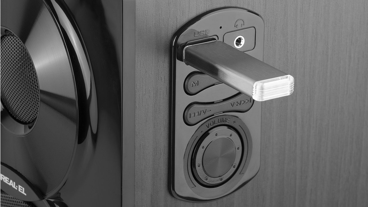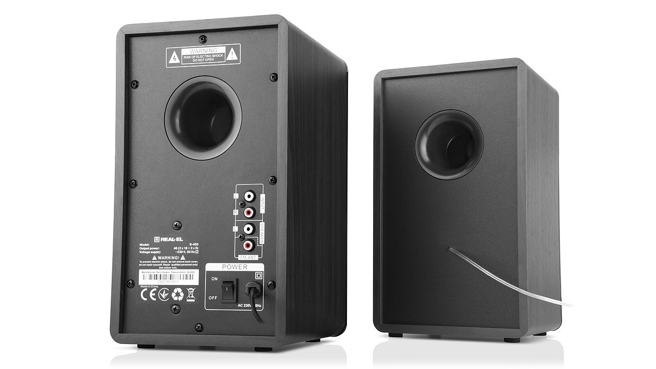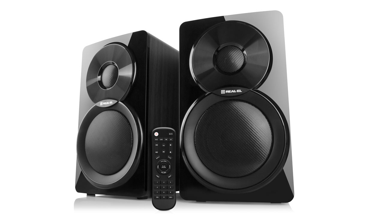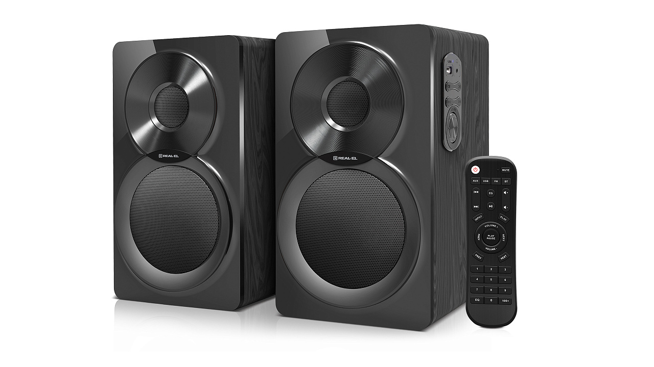 Kahe ribaga akustiline süsteem REAL-EL S-450 omab kaasaegset elegantset disaini ümarate külgedega, mis annavad sellele erilise võlu. Tänu võimsale võimendile, mis on integreeritud puidust korpusesse, taasesitavad REAL-EL S-450 madala ja kõrge sagedusega kõlarid kõige nõudlikumate kompositsioonide kogu sagedusspektrit detailse ja realistlikuna. Kõlari küljepaneelil asub mugav muusika taasesituse juhtplokk ja USB flash draivi pistikupesa. Akustilisel süsteemil on sisseehitatud Bluetooth-moduul, FM-raadio ja audiofailide mängija. Lisamugavuse tagamiseks on komplektis kaasas mugav kaugjuhtimispult ja kõrvaklappide ühendamise pistikupesa.