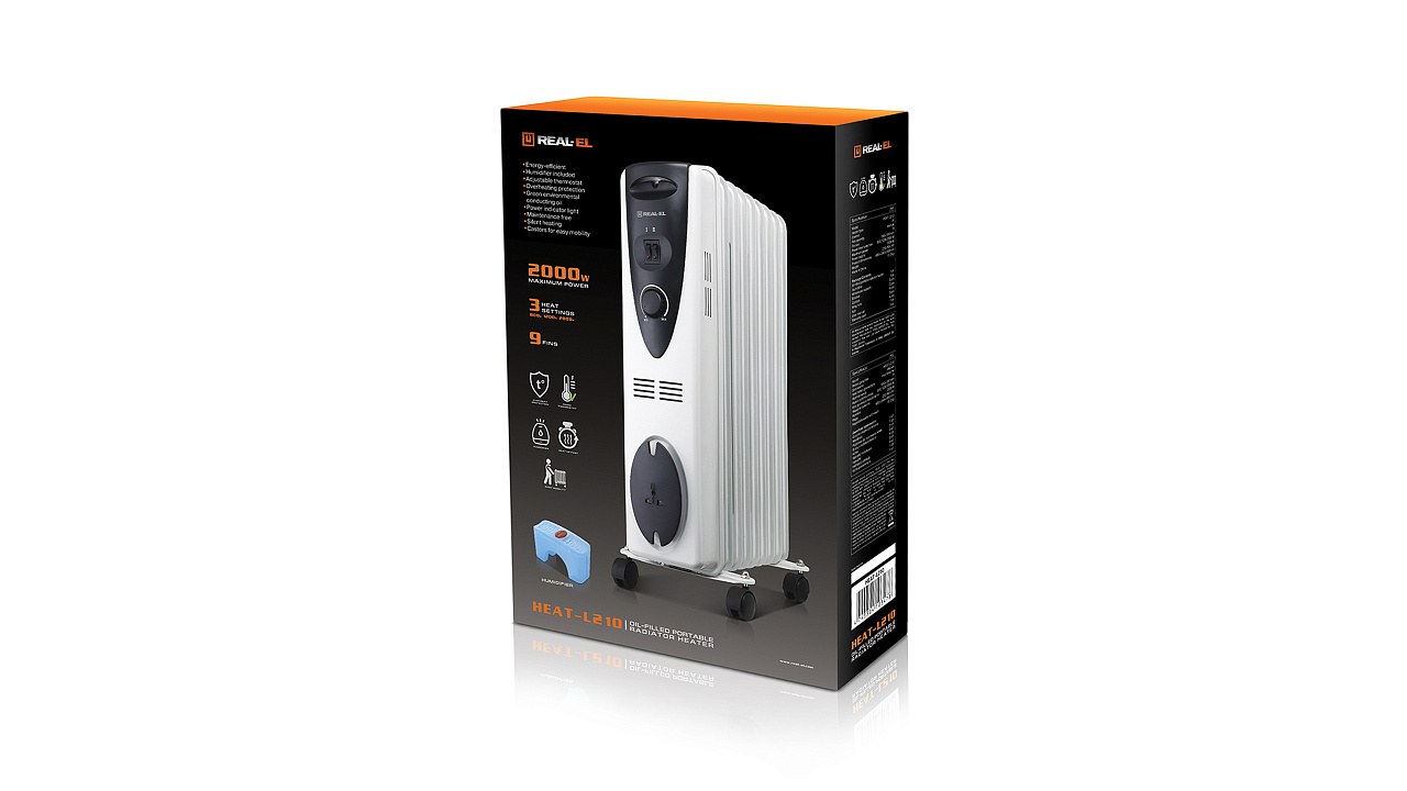 Mobiilne õliküttega radiaator REAL-EL HEAT-L210 tagab ruumi stabiilse temperatuuri. Mugavuse tagamiseks sisaldab komplekti õhuniisutit ning lihtsaks liigutamiseks on radiaatoril rullikud. Tootja on hoolitsenud turvalisuse eest, HEAT-L210 mudelil on ülekuumenemiskaitse ning täiteainena kasutatakse keskkonnasõbralikku õli.