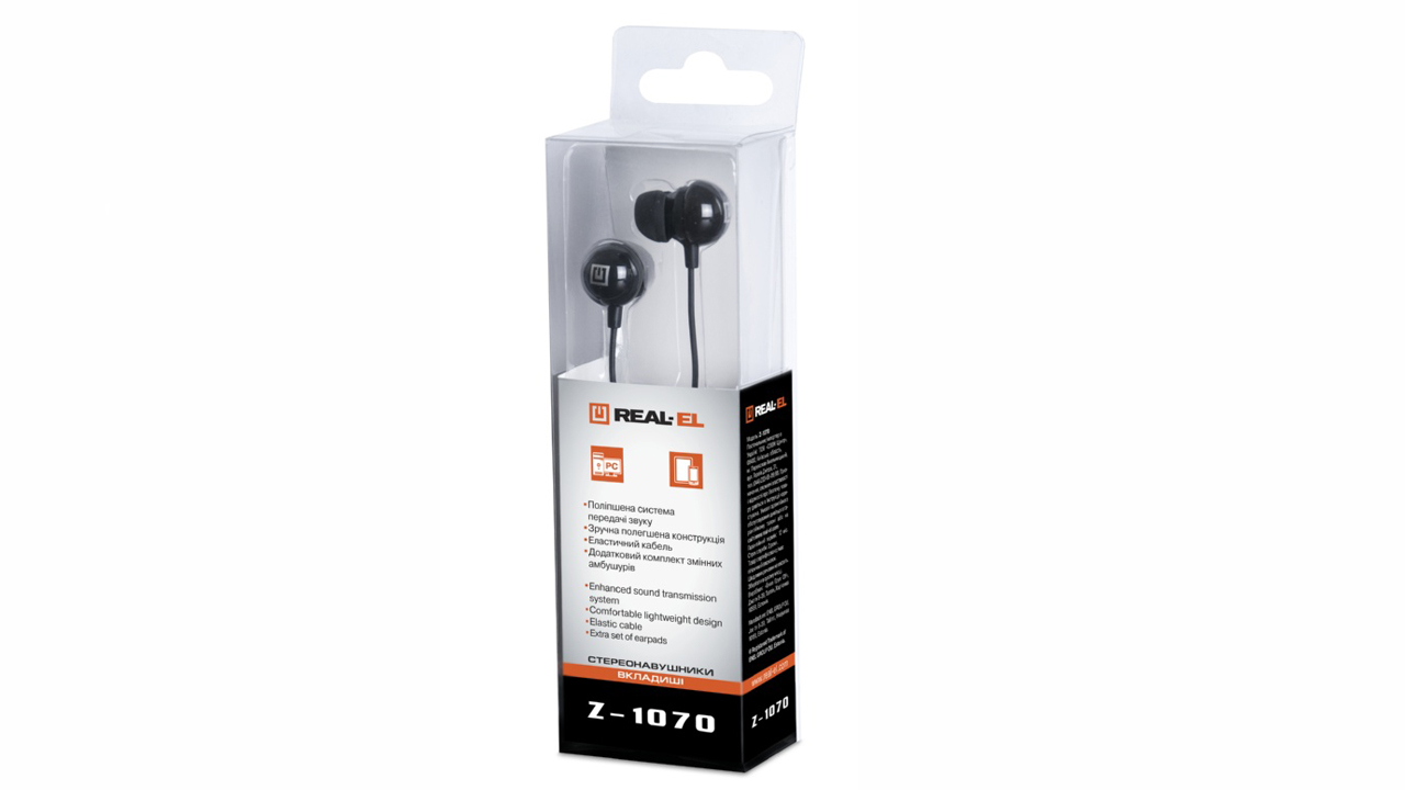 Nööpkõrvaklapid REAL-EL Z-1070 on ettenähtud tööks personaalarvuti heli- kaartidega ja muude nendega sobivate süsteemidega (kantavad meedia- mängijad, arvuti mängukonsoolid jms).