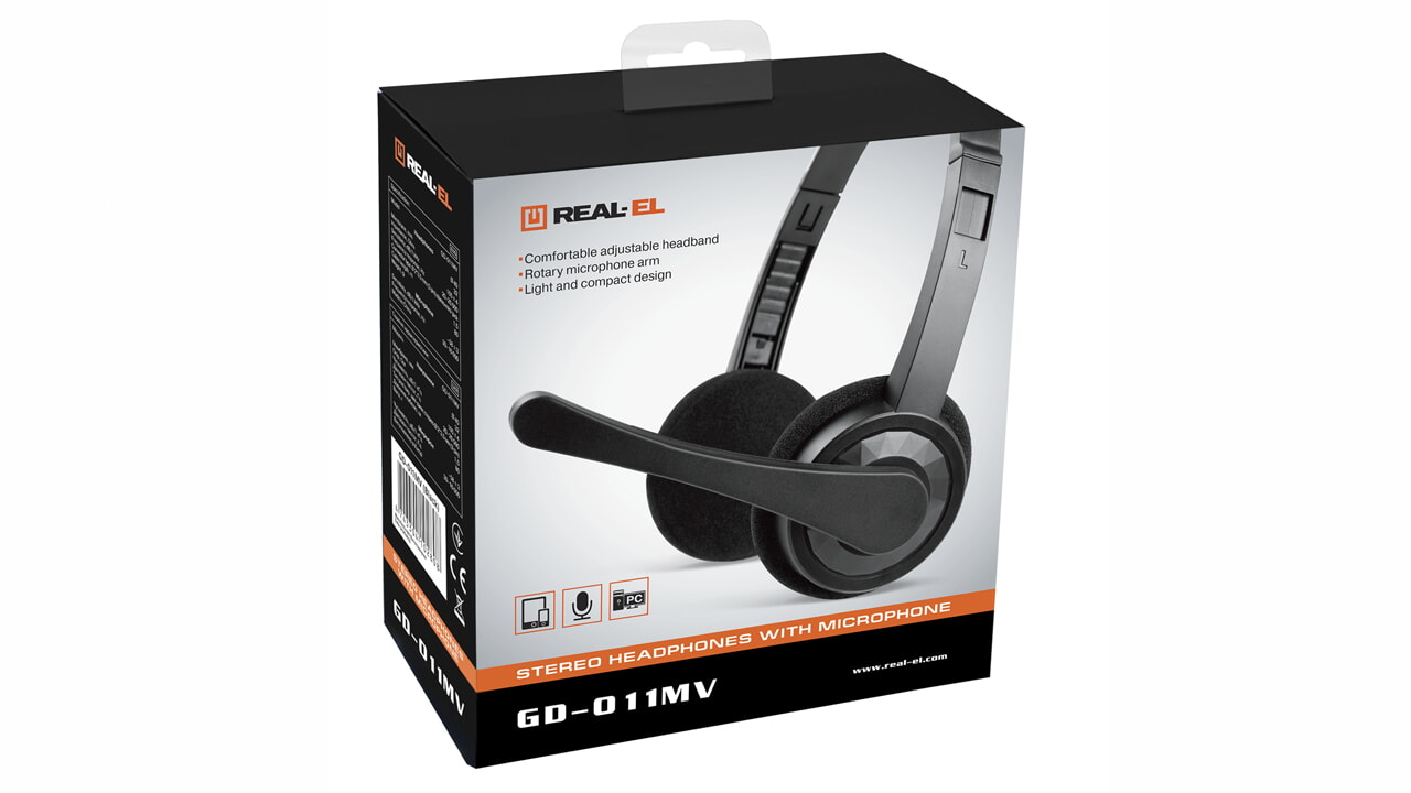 REAL-EL GD-011MV kõrvaklapid mikrofoniga on mõeldud töötamiseks arvuti helikaartide ja muude nendega ühilduvate süsteemidega. Neid saab kasutada ka internetitelefonias, videokonverentside korraldamisel, multimeediumrakendustes, interaktiivsetes mängudes, kõnes tuvastamiseks ja võõrkeelte õppimiseks.