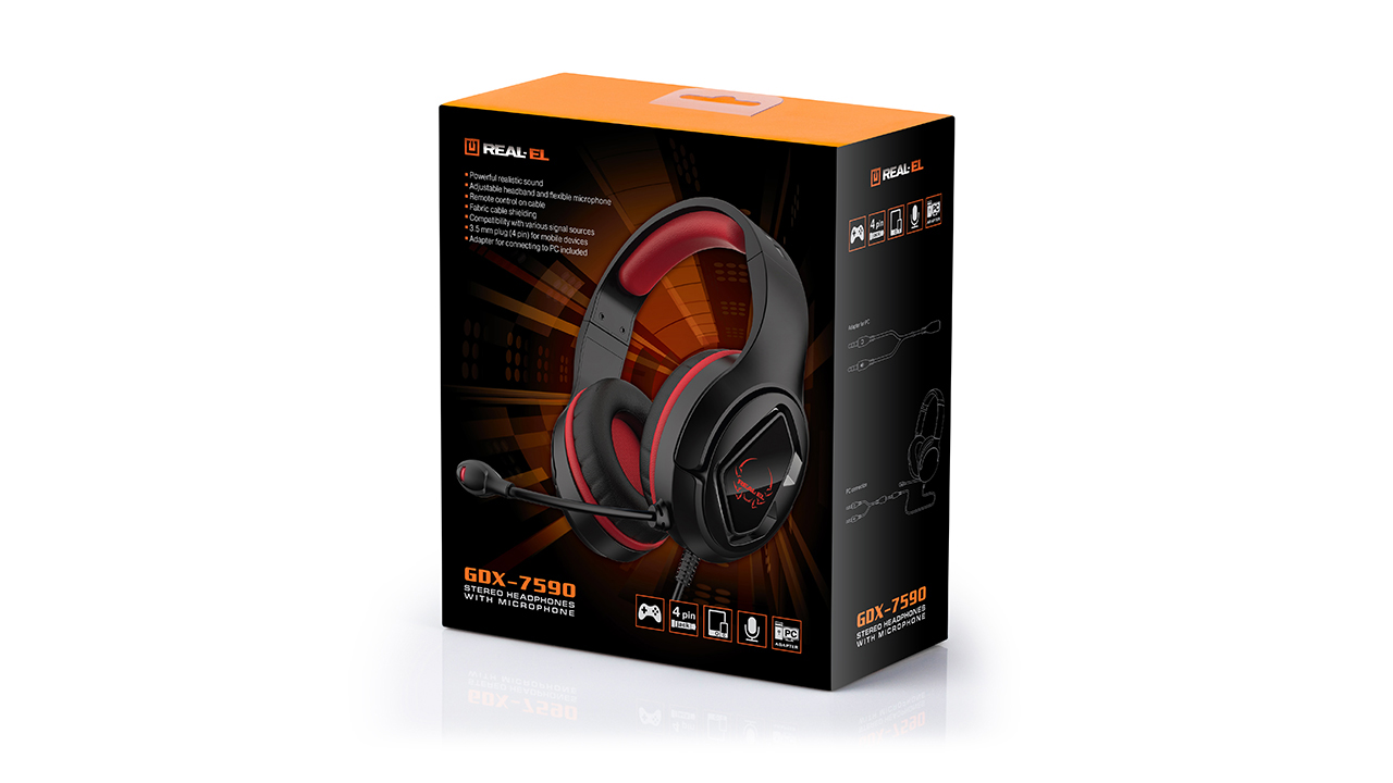 Kõrvaklapid koos mikrofoniga REAL-EL GDX-7590 tagavad võimsa realistliku heli esitamise, luues täieliku sukeldumise tunde muusikakompositsiooni või mängu. Ühilduvad meediapleierite ja arvutitega.
