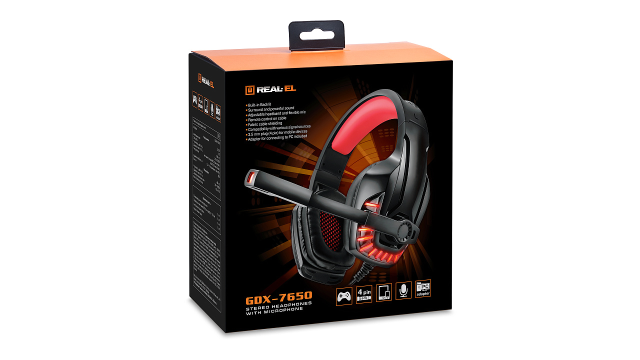 Kõrvaklapid mikrofoniga REAL-EL GDX-7650 tagavad võimsa realistliku heli taasesituse, luues täieliku sukeldumise tunde mängu. Ühilduvad meediapleierite ja arvutitega.