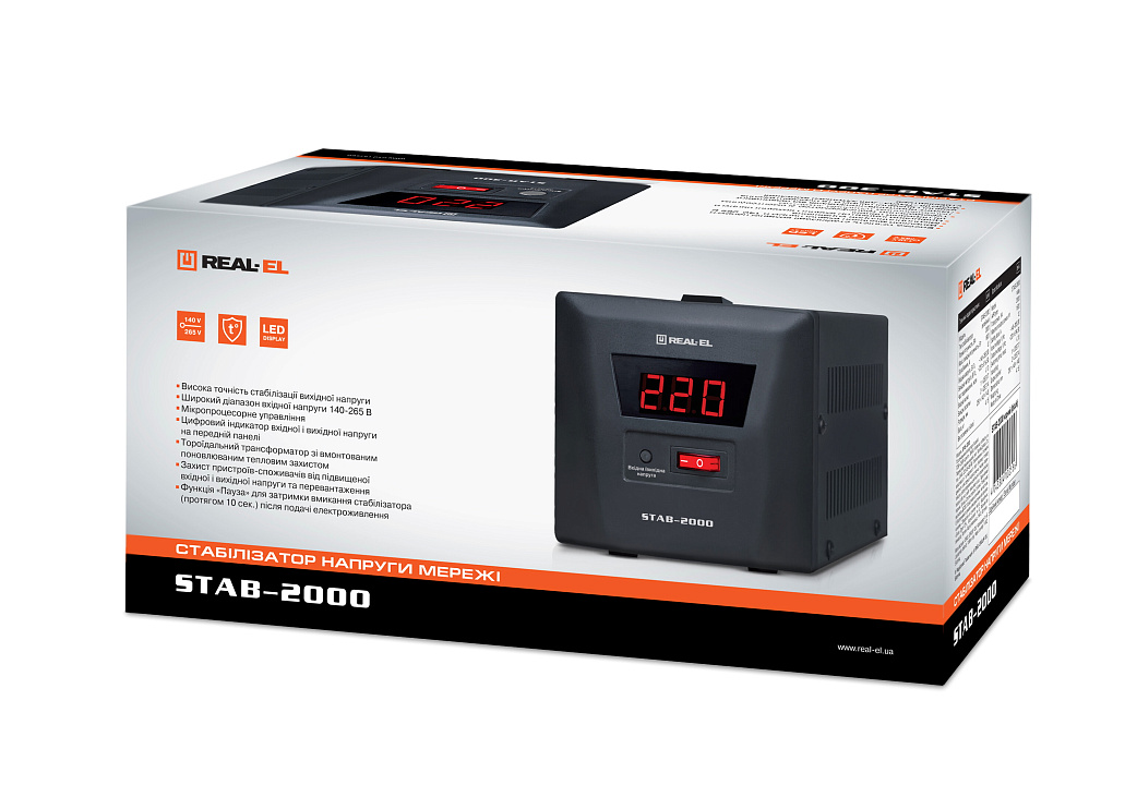 Pingestabilisaator REAL-EL STAB-2000 on ettenähtud erinevatele tarbijatele kvaliteetse ja stabiilse pinge tagamise jaoks elektrivõrgu nominaalpingest suurte väärtustega ja kestvusega hälvete tingimustes, seadmete-tarbijate kaitseks ülekoormuse eest, kõrgsagedus- ja impulsshäirete toime eest.