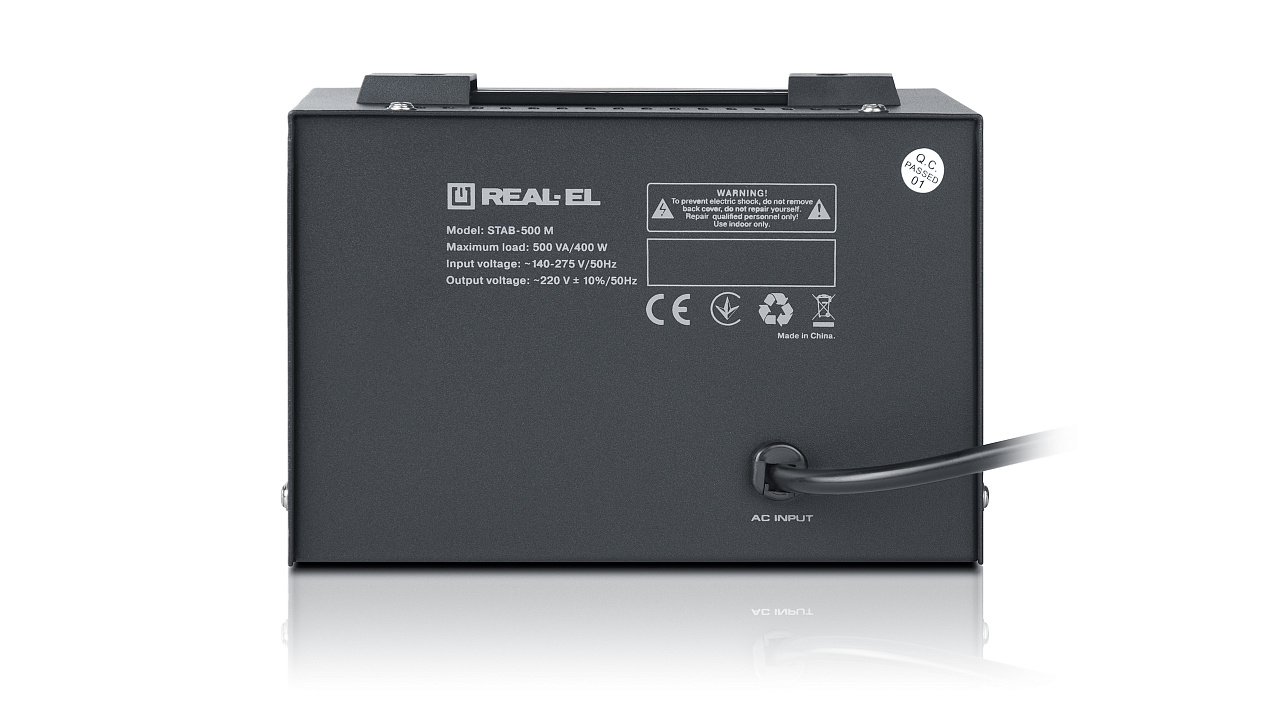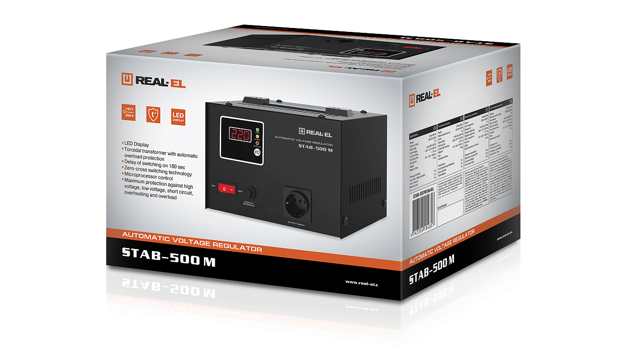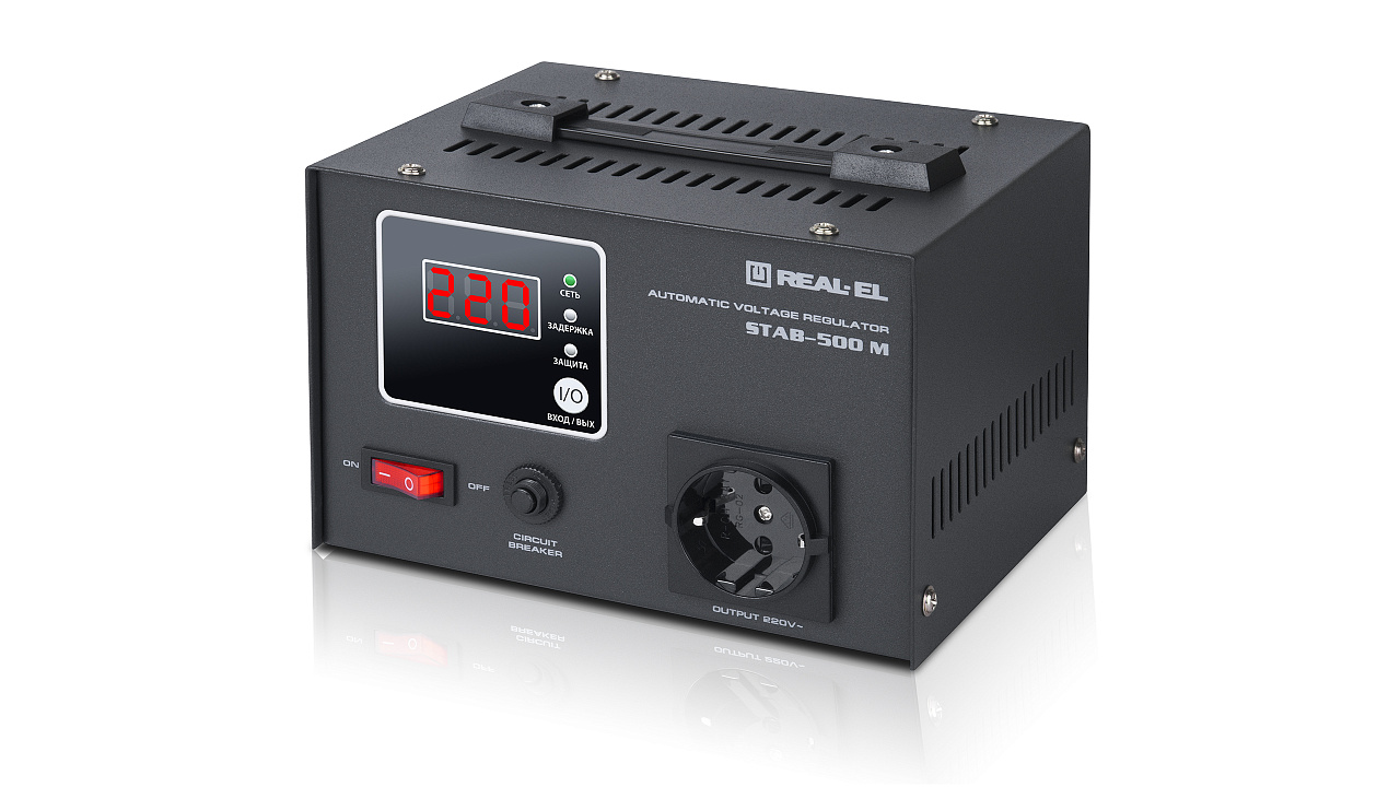 REAL-EL STAB-500 М pinge stabilisaator on mõeldud erinevate tarbijate kvaliteetse ja stabiilse elektrienergia tagamiseks olukordades, kus elektrivõrgu pinge kõrvalekalded nominaalväärtusest on suured nii suuruse kui kestuse poolest, kaitstes tarbijaseadmeid ülekoormuse ja kõrge sagedusega ning impulssmüra eest.
