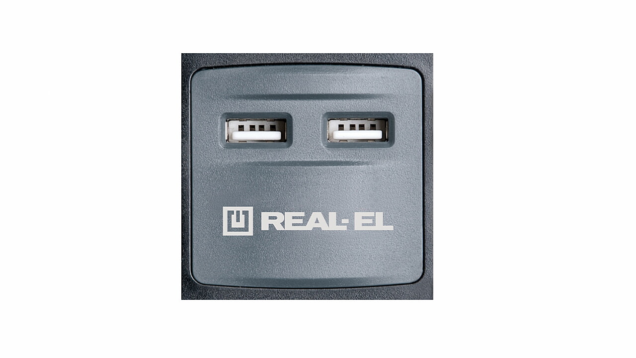 Pikendusjuhe REAL-EL RS-5 USB Charge koos sisseehitatud USB laadimisseadmega on ettenähtud selleks, et ühendada elektri- võrku elektriseadmeid ja samas laadida kaht seadet. 5 pesad maandusega ja kaitsekatetega ja USB-pesad kahe seadme laadimiseks.