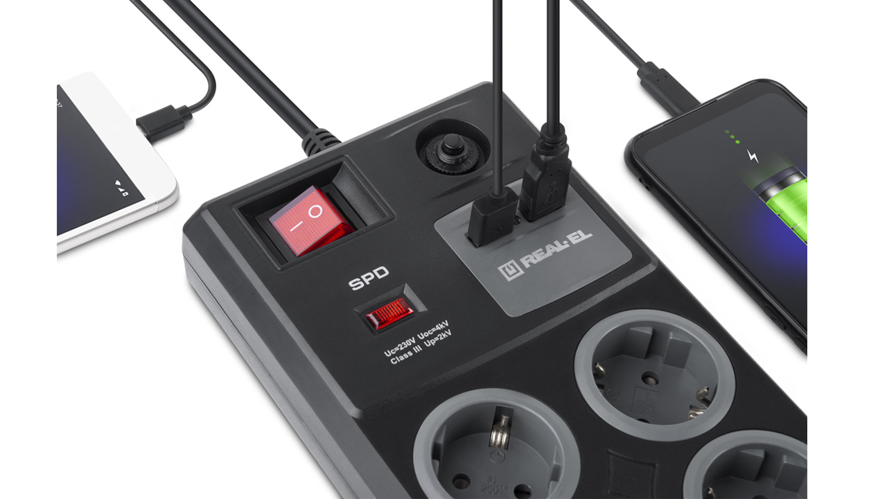 REAL-EL RS-8F USB Charge pikendusjuhe on usaldusväärne ja tõhus viis kaitsta ja laadida oma elektroonikaseadmeid.